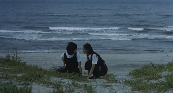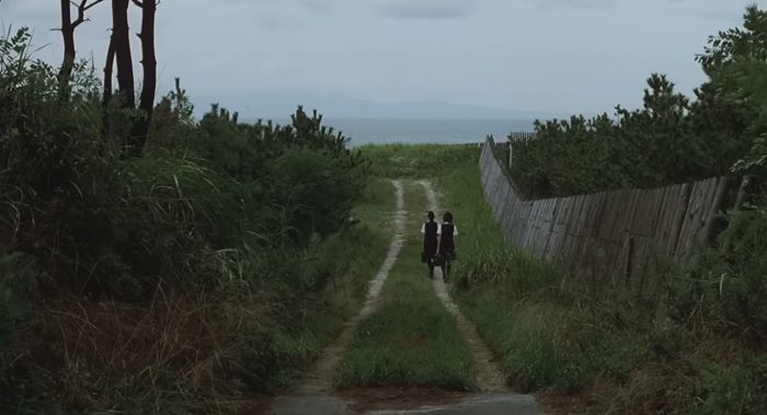 this movie is very quiet i would say. like SURE, theres dialogue here and there but theres a lot of quiet moments. moments where we are just staring at the waves as they crash with the surface. moments where we are just watching kayako and endo just being there. in silence. and their silence can just say so much sometimes. and there's this beautiful beach they go to and its just quiet between the 2 girls except for the sounds of the waves. i really enjoyed those quiet moments. because you just get to focus on the characters and see how they are reacting and it just feels so intimate. and real.