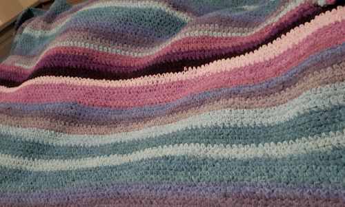 i also think my grandma passing away made us be even closer now because we both used to talk to her a lot, but now we only have each other. she's currently in her knitting phase to she made me a blanket, it is super soft and i love the colors.