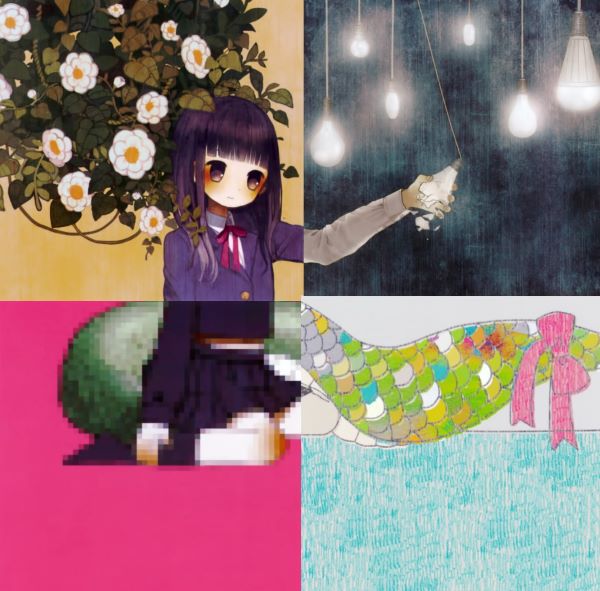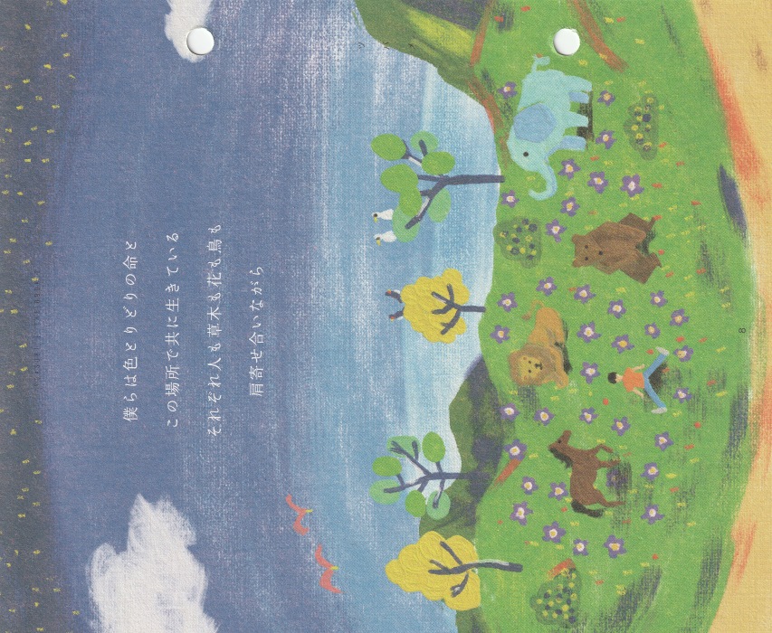 because of this purchase i noticed that the different illustrations in here (drawn by meisa) all form 1 picture when put together.