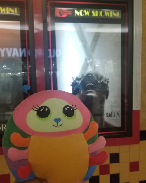 i also took nessa to the theater with me. not cus i needed her or anything. i just wanted her to witness the masterpiece that i KNEW saw x was going to be. also in the previous months i've stopped giving a fuck about some things and one of those things is to bring plushies with me to places i go.