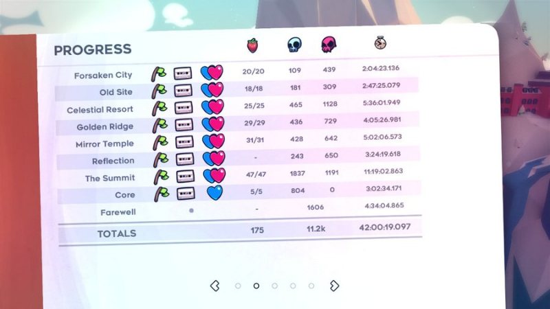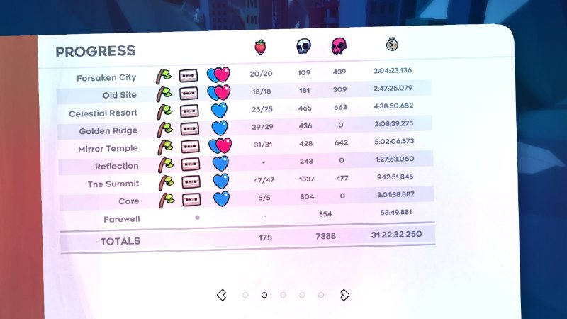 06.may.23ok i finished it... man. i loved it a lot. not only were the chapters and level design super good, but it kinda surprised me how much i relate to madeline and her struggles
