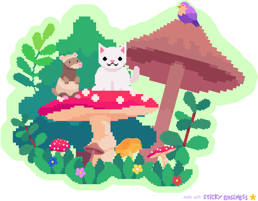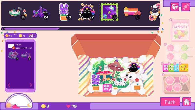 [14.oct.23]this is such a cute game!!!!!! i got it from a friend and i just found it so charming. it's basically about making a shop about selling stickers, and the process of designing them is so calming for me. this is a perfect game if you want to listen to some chill music and just relax for a bit